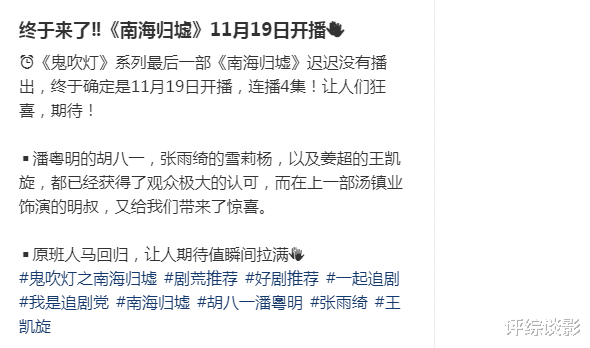 一直到快入冬了,鹅厂官方才终于文书,《南海归墟》将于11月份播出。