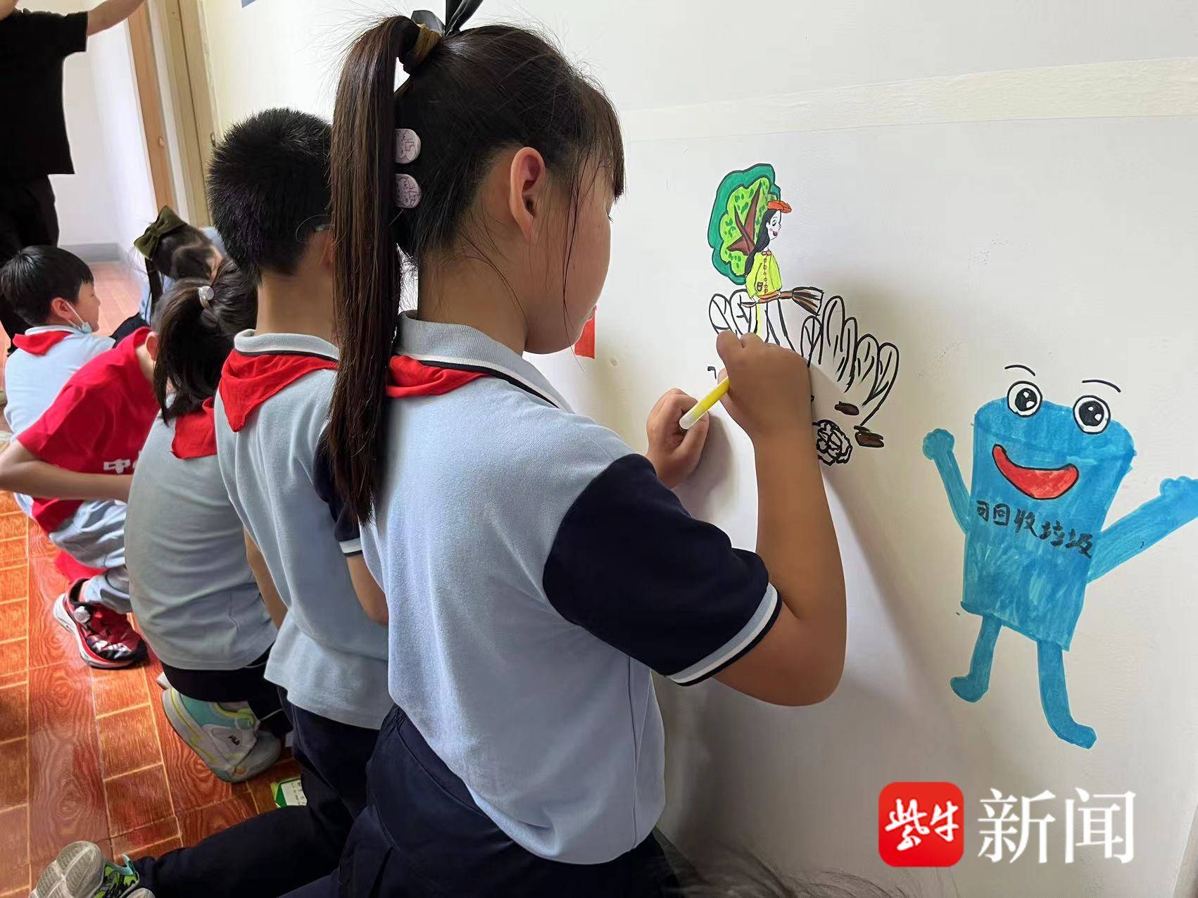 终末,社区使命主谈主员率领孩子们来到南苑新村88幢环卫工东谈主爱心休息驿站,驱动手绘墙举止。小一又友围在墙边,负责构念念,阿谀我方生计中的不雅察和学到的学问,进展丰富的联想力,用手中的画笔画出对环卫工东谈主的尊敬、对垃圾分类环保理念的相识及对六一儿童节的好意思好愿景。这次举止,让孩子们在手绘中潜移暗化地继承垃圾分类学问的训导,突破垃圾分类布道败兴阵势,让垃圾分类信得过融入生计,让垃圾分类理念扎根“童”心。